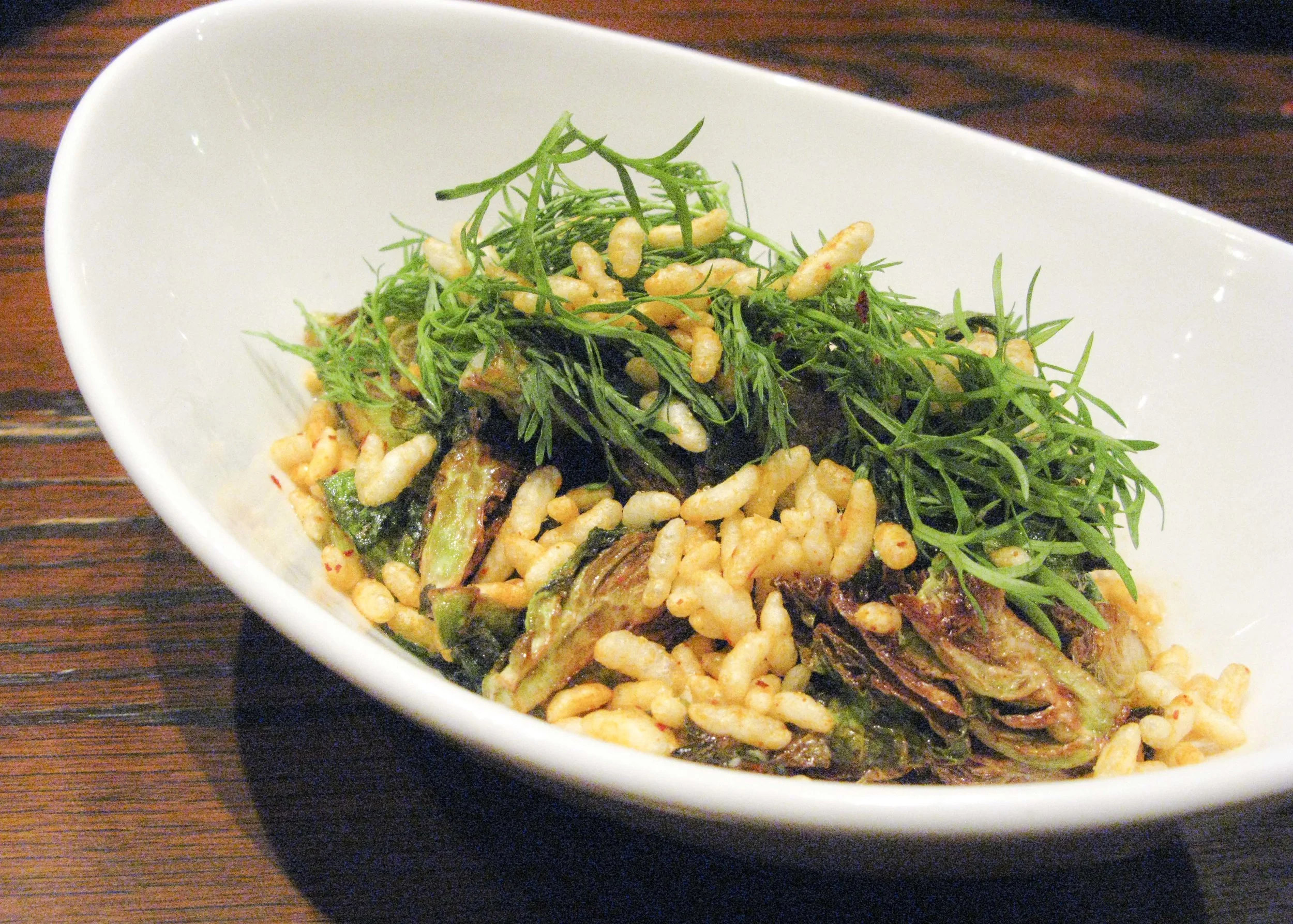 I had heard all about Momofuku brussel sprouts. Don't cringe now. I don't understand how so many peeps despise this stuff.. I think it's delicious! In Ssam Bar they roast the sprouts with some fish sauce vinaigrette (patis!) and top 'em off with some rice puffs for texture. I don't know if my friends took to this, but I wanted to drink the sauce from the bowl.