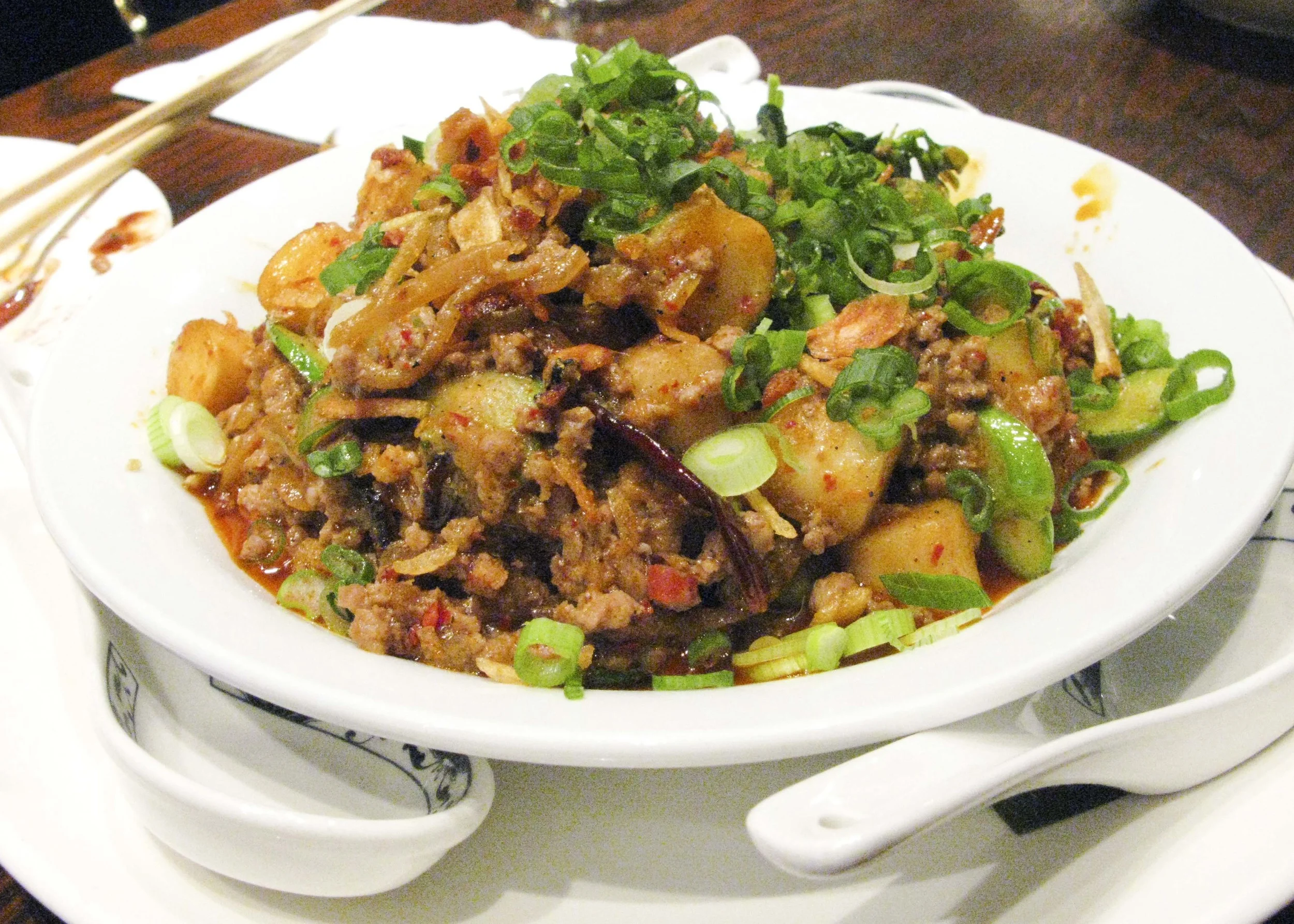 The last was a hit or miss. I liked 'em but my other friends weren't that into it. Rice cakes, chopped into little bits and quickly wok fried with chinese sausage, ground pork, crunchy scallion, chilies and green onions. Comfort food for me - and perfect with bowl of rice.